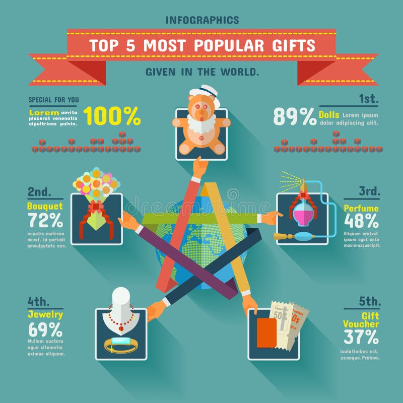 Top 5 Most Popular Gifts Infographics Stock Vector Illustration Of Concept Label 55580889