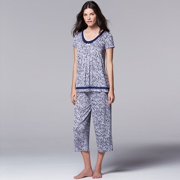 Women S Simply Vera Vera Wang Pajamas Short Sleeve Sleep Top Capri Pants Set Simply Vera Wang Short Sleeve Pajama Set Capri Pants