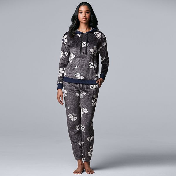 Women S Simply Vera Vera Wang Velour Hooded Pajama Top Pajama Banded Bottoms