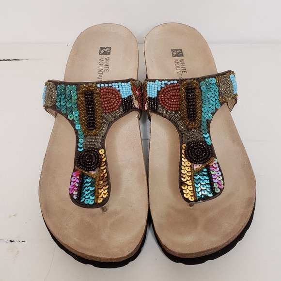 Details about White Mountain Cork Wedge Thong Sandals Sequins Ans Stones 10M See original listing. The White Mountain Shoes Company. White Mountain Cork Wedge Thong Sandals Sequins Ans Stones 10M.